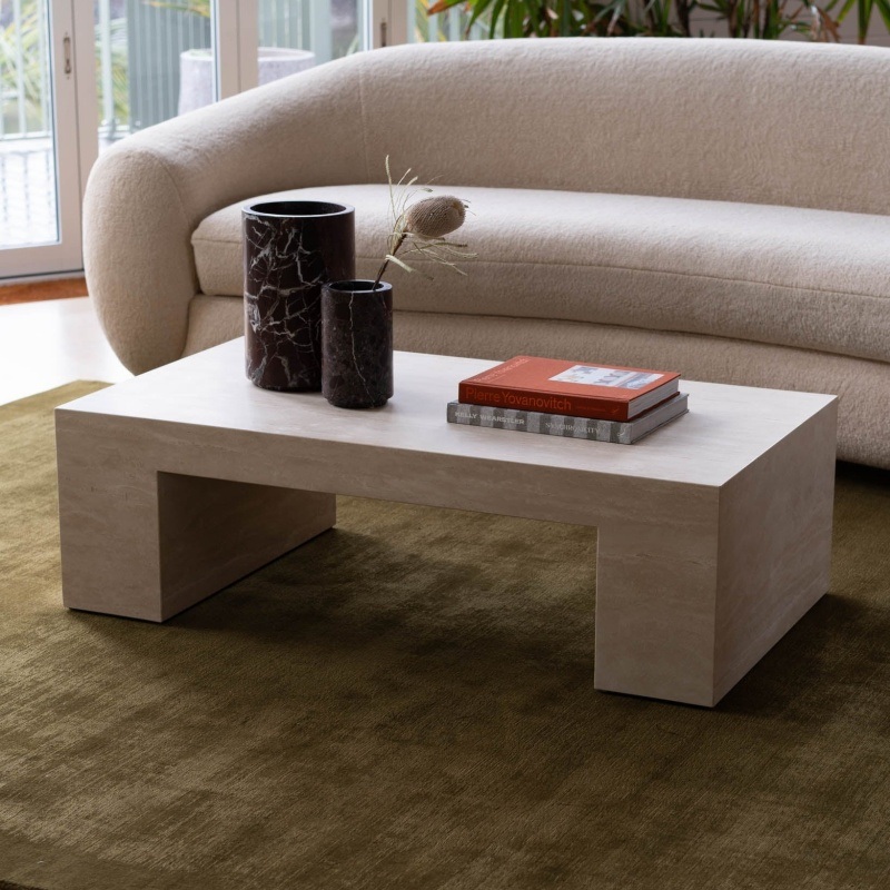 تتميز طاولات القهوة الحجرية الثلاث، "طاولة القهوة ذات الدعم المزدوج من الترافرتين"، بالملمس الفريد للمواد الطبيعية والتصميم المبتكر للمصممين، وتكسر حدود "الأثاث من أجل الوظيفة فقط" - فهي ليست حاويات معيشية عملية فحسب، بل أيضًا تركيبات فنية يمكنها تحديد أسلوب المساحة، وحقن نسيج حصري في غرفة المعيشة الخاصة بك.