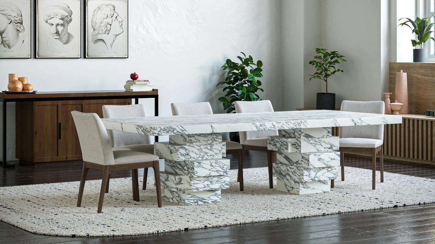 II. طاولة الطعام تُضفي لمسة جمالية على المكان. طاولة الطعام ليست معزولة، بل هي نقطة التقاء بين غرفة المعيشة والمطبخ، ونقطة محورية في تصميم المنزل. الطاولة المختارة بعناية تُضفي رونقًا على المكان فورًا؛ أما الاختيار غير المناسب فسيبدو في غير محله. يتناسب المنزل العصري البسيط مع طاولة طعام من الرخام الأبيض، بملمسها الطبيعي الذي يُضفي لمسة من الرقي؛ أما المنزل الصيني، فيتميز بطاولة من الرخام الداكن، تُجسد التراث، وهي أسهل تنظيفًا من الخشب الصلب. والأهم من ذلك، أن كل قطعة رخام لها نقش فريد، مما يجعل طاولة طعامك لمسة جمالية مميزة. |