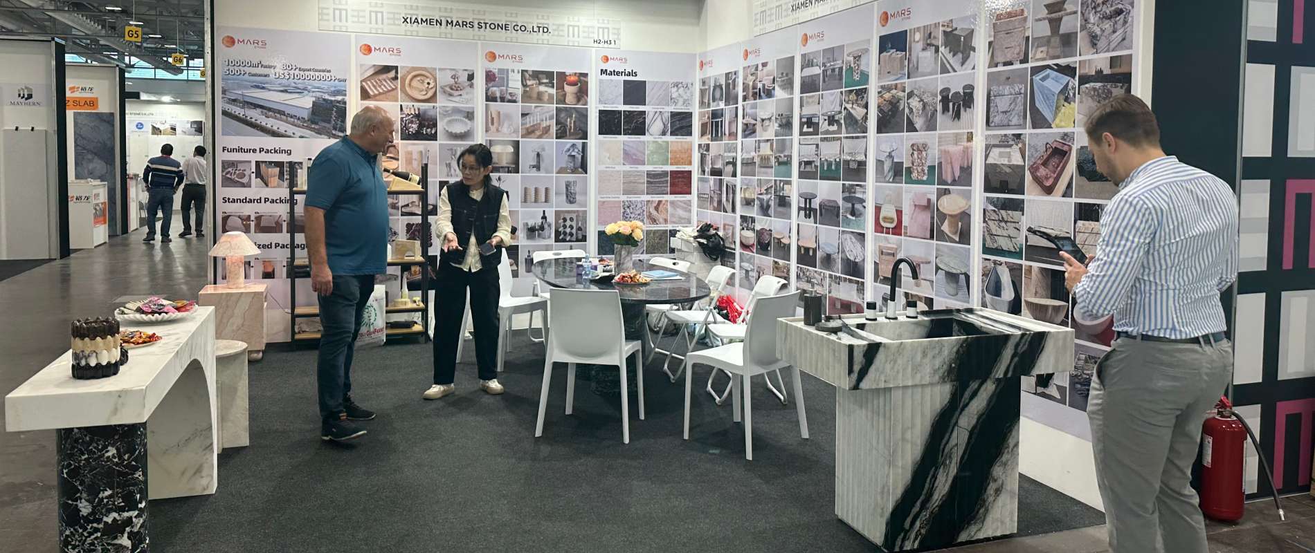 في الفترة من 23 إلى 26 سبتمبر 2025، أُقيم المعرض الإيطالي الرائد عالميًا للحجر في مركز فيرونا للمعارض بإيطاليا. وعرضت شركة ماركس ستون، المتخصصة في الأثاث والحرف اليدوية المصنوعة من الرخام، منتجاتها الرئيسية في المعرض. وضم جناحها المزين بشكل رائع، H2-H3-1 في القاعة 8، مجموعة غنية من صور المنتجات على الجدران، بالإضافة إلى طاولات طعام رخامية وقطع فنية ومصابيح مميزة. وقد جذبت منتجاتها اليدوية الرائعة وتصاميمها المتطورة انتباه المصممين العالميين ومطوري الفنادق ومشتري أثاث المنازل الفاخر. |