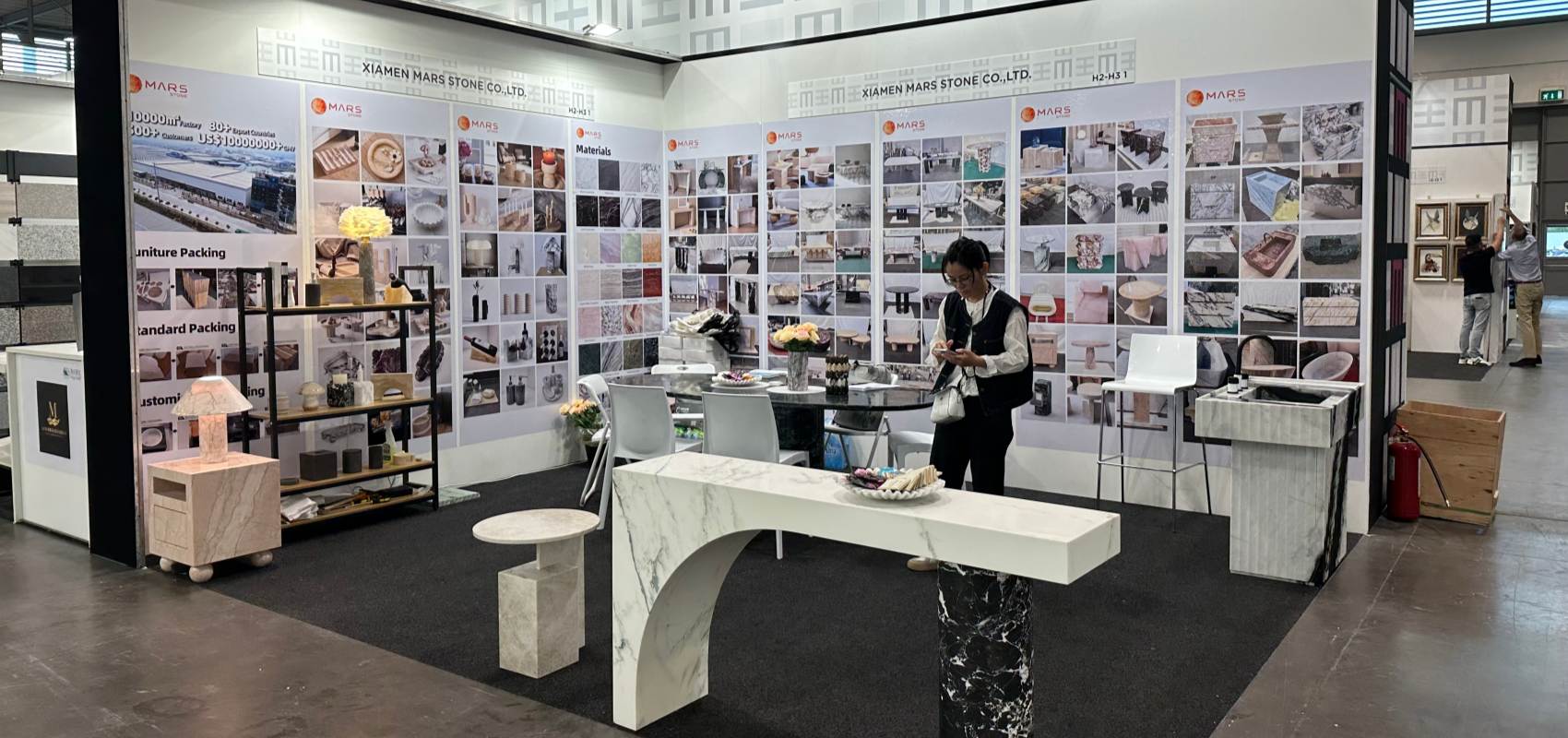 في المعرض، عرضت "ماركس ستون"، تحت شعار "الجماليات الطبيعية والتناغم اليدوي"، أثاثها الرخامي وحرفها اليدوية الجذابة. صُقلت قطع الأثاث، مثل طاولات الطعام الرخامية، يدويًا ورُصّعت للحفاظ على الملمس الطبيعي للحجر. أما القطع الفنية والمصابيح المميزة وغيرها من الحرف، فقد تضمنت أشكالًا منحوتة يدويًا ومُصممة حسب الطلب وحرفية متقنة، كل منها يُجسّد حرفية فريدة. كما تُروّج العلامة التجارية لمفهوم "الحرفية الخضراء"، حيث حصلت ثمانية منتجات منها على شهادة LEED. كما تم تكريم "حلول التخصيص اليدوية" (التي تتيح تعديل انحناءات الأثاث وتفاصيل الحرف اليدوية حسب الطلب).