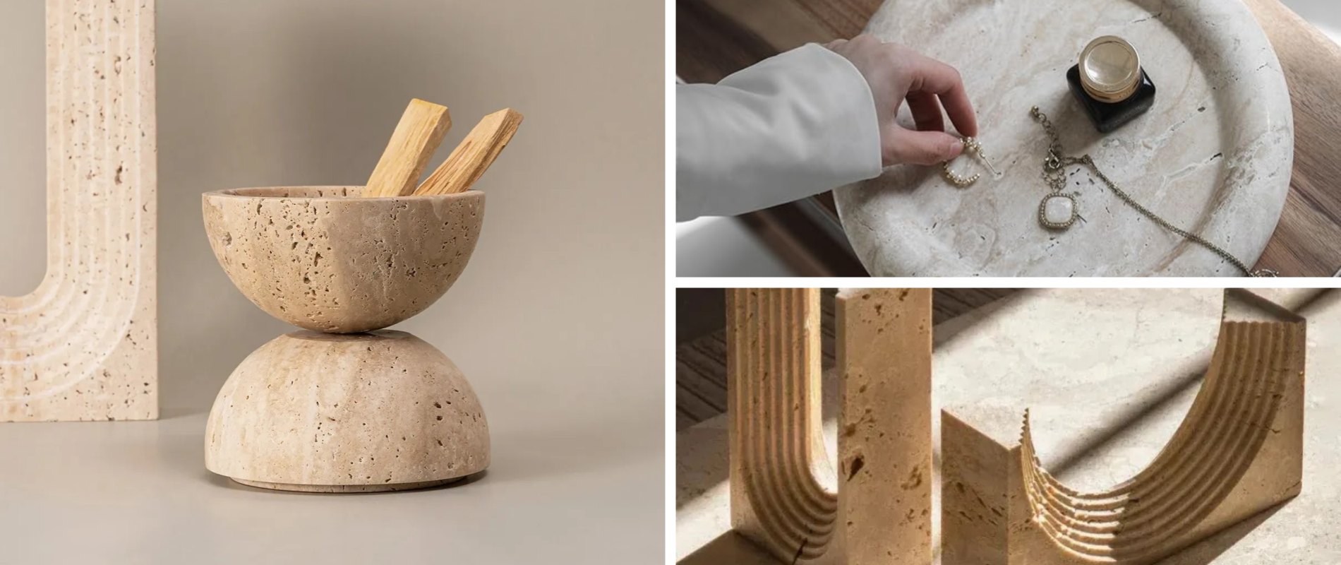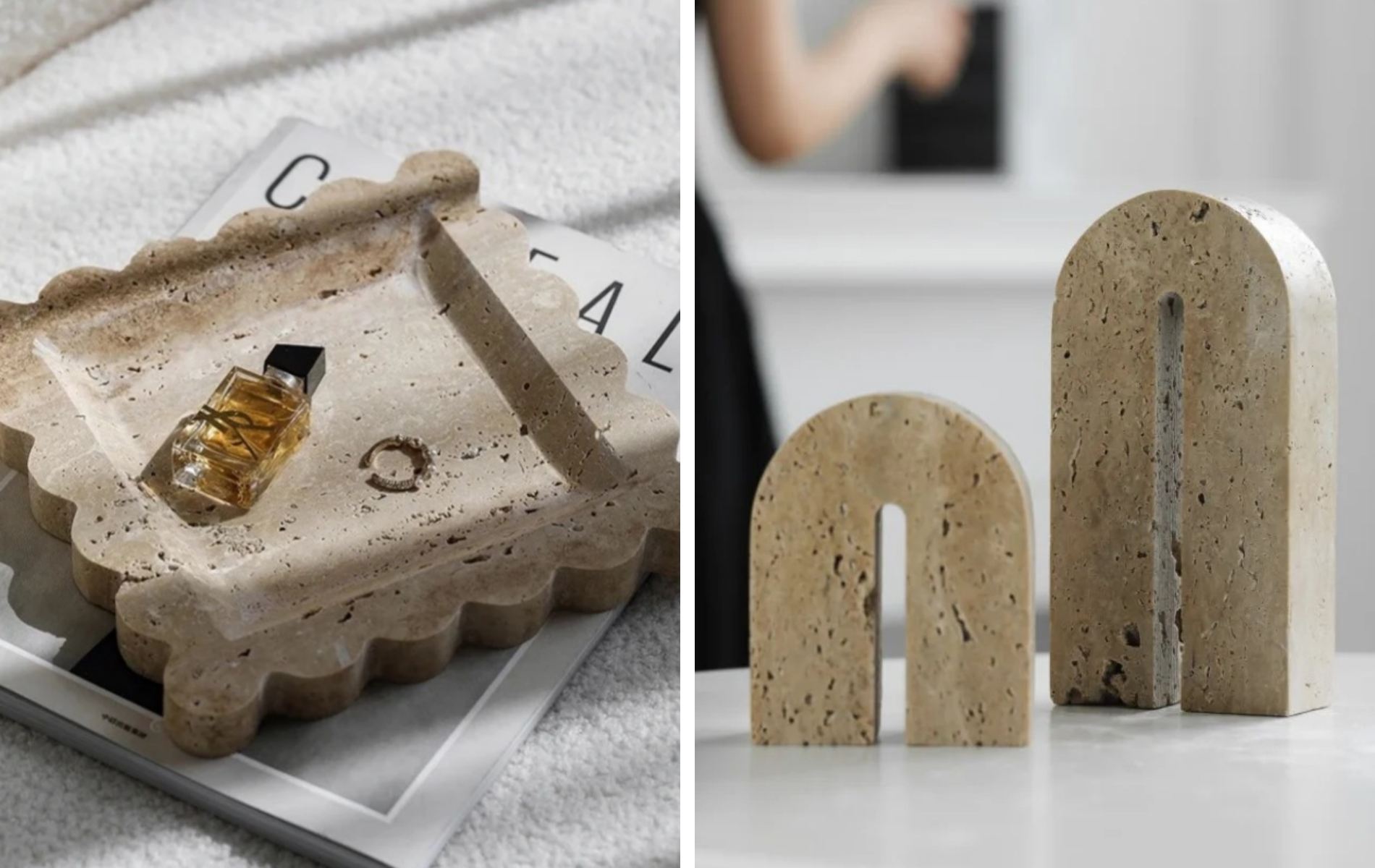 بدون تلميع مبالغ فيه أو تفاصيل براقة، تُبرز هذه القطع سمات الترافرتين الطبيعية: درجات ألوان ناعمة (من البيج الكريمي إلى البني الداكن)، ومسامات محكمة، وأسطح ناعمة تدوم طويلًا. إنها أكثر من مجرد إكسسوارات، بل هي بمثابة مراسي فضاء تجمع بين العملية والفخامة الطبيعية.